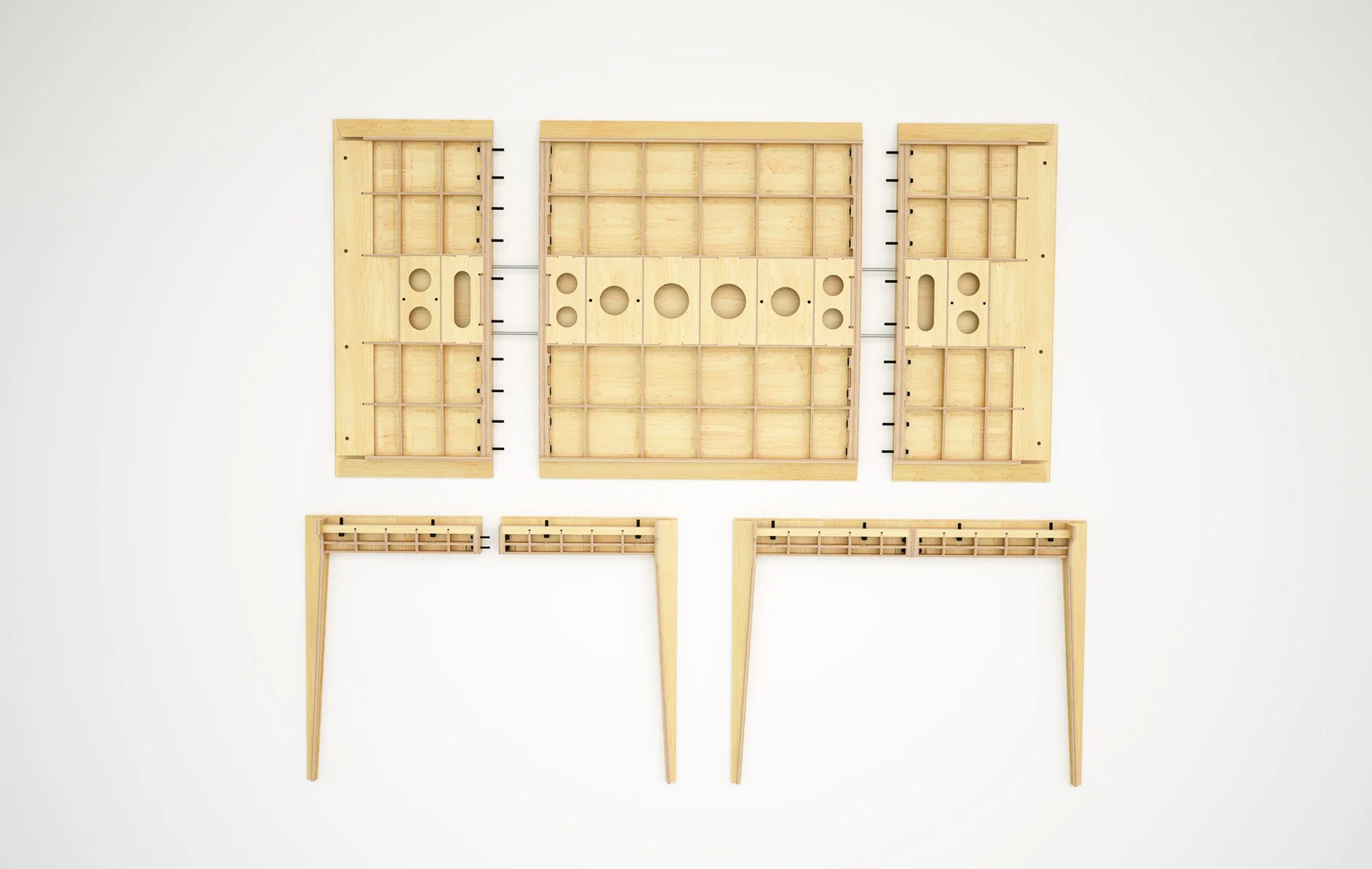 The ThinCredenza 001 X/3 shown un-assembled with it’s constituent unit assemblies.
