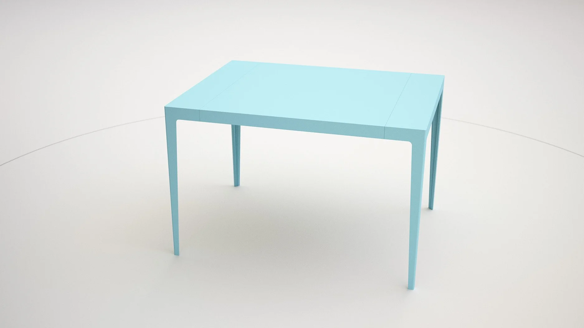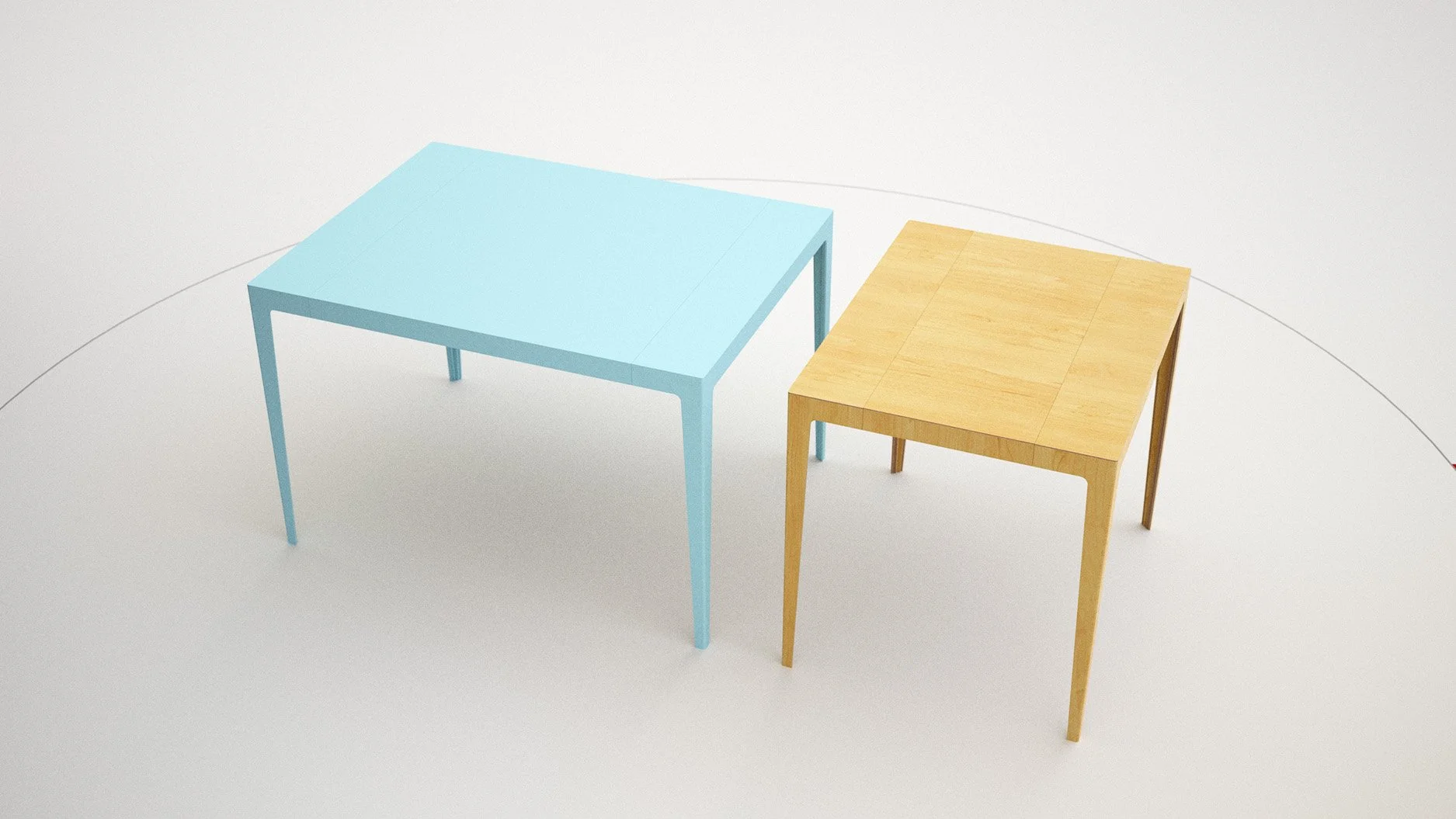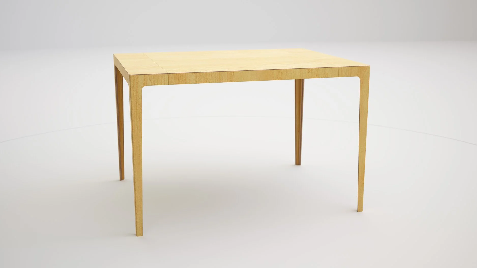 The TT005 ThinTable is the first table designed for the StealthSeries of furnishings. It is the “compact” sized table of the series and features flush surfaces, thin edge detail, and rounded corners all coming together to create a table appropriate for kitchens or small dining areas. Currently available in medium and small sizes. The TT005 tables feature unibody torsion box chambers and half-lap spar construction. The tables consist of three modules, a center deck, and two combination deck/leg modules that simply bolt together. Made with Baltic birch plywood and available with a natural oil/wax finish or painted with a poly finish. Dimensions: TT005m: W44.5” x D34” x H29”; TT005s: W34” x D27” x H29”