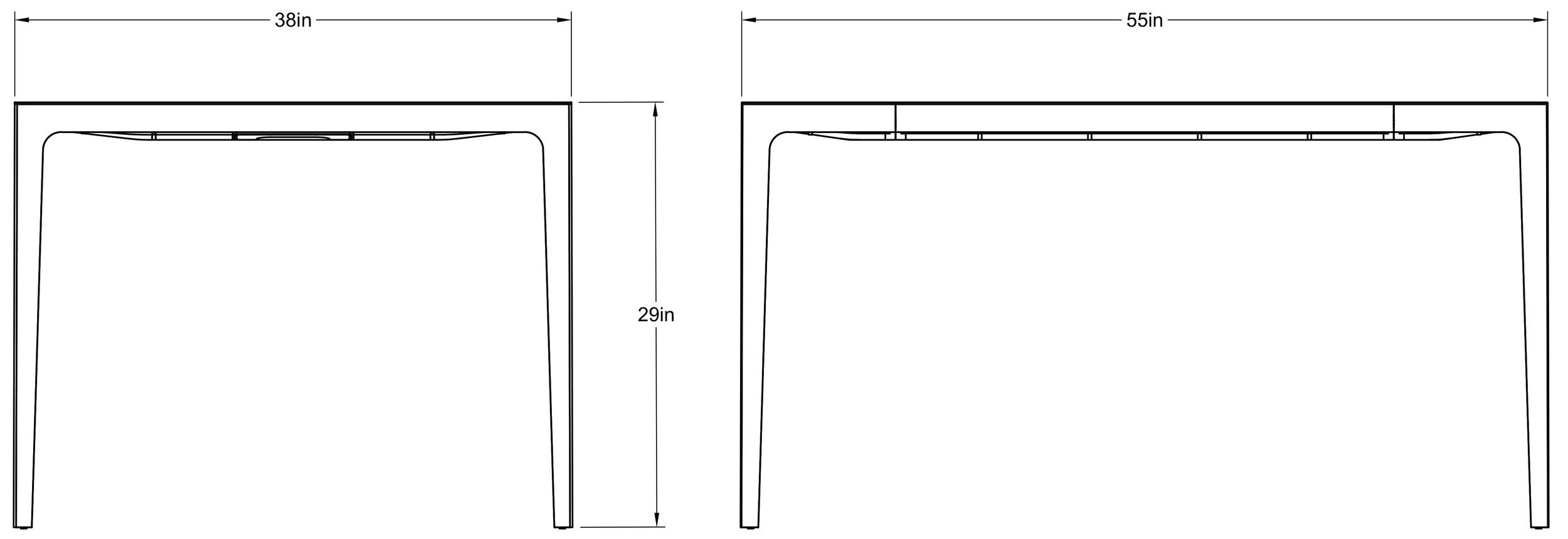 The TT009 Table is currently the largest of the StealthSeries tables. Designed as an elegant six seat dining table with its StealthSeries design features of narrow surfaces, thin edge detail, and rounded corners all come together to create beautiful minimalist tables. The TT009 Table also features unibody torsion box chambers and half-lapped spars. Made with Baltic birch plywood and available with a natural oil/wax finish or painted with a satin poly top coat finish. For a black finish, the tables are stained and topped with a natural oil/wax finish. Dimensions: TT009: W55” x D38” x H29”